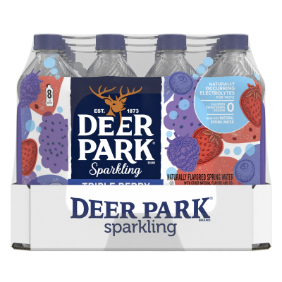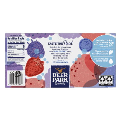 Our Triple Berry flavored sparkling water is free of calories, sugars, sweeteners, and sodium and contains only three ingredients. Spring water, refreshing bubbles, and real fruit flavors.
